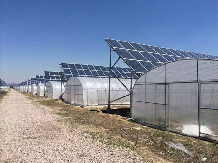光伏農業科技大棚是分布式光伏應用的一種新的模式。與建設集中式大型光伏地面電站相比,光伏農業科技大棚項目有諸多的優點。首先,光伏農業大棚利用的是農業大棚的棚頂,并不占用地面,也不會改變土地使用性質,因此能夠節約土地資源;其次,通過在農業大棚上架設不同透光率的太陽能電池板,能滿足不同作物的采光需求,可種植有機農產品、名貴苗木等各類高附加值作物,還能實現反季種植、精品種植;利用棚頂發電不僅可以滿足農業大棚的電力需求,還可以將剩余的電并網出售,增加收益。